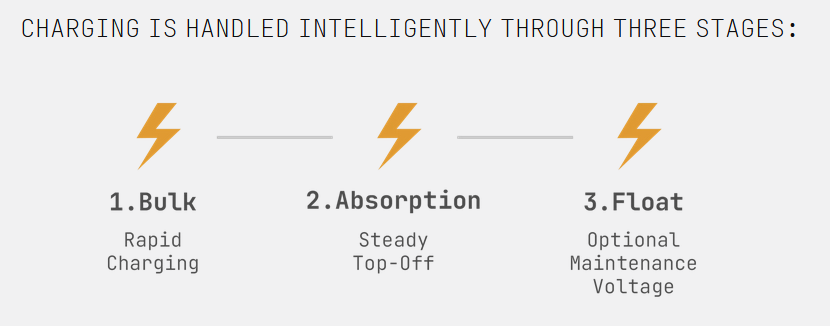 A temperature sensor is included; it fine-tunes voltage for lead-acid batteries and blocks charging when temperatures drift outside a safe range. This helps prolong battery life.