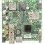 720Mhz CPU, 128MB RAM, 1xGigabit Ethernet, 1xSFP cage, 1xminiPCI-e, 1xSIM, onboard 802.11ac Two Chain 5Ghz wireless, RouterOS L4